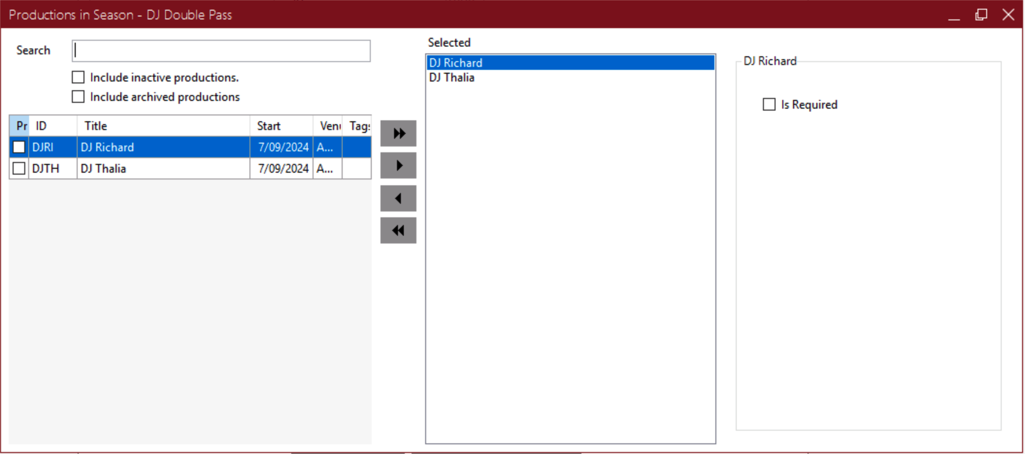 We would then need to set up the Double Pass season Book Type and make sure this Season Book Type was added to the Pricing Plan for both productions.