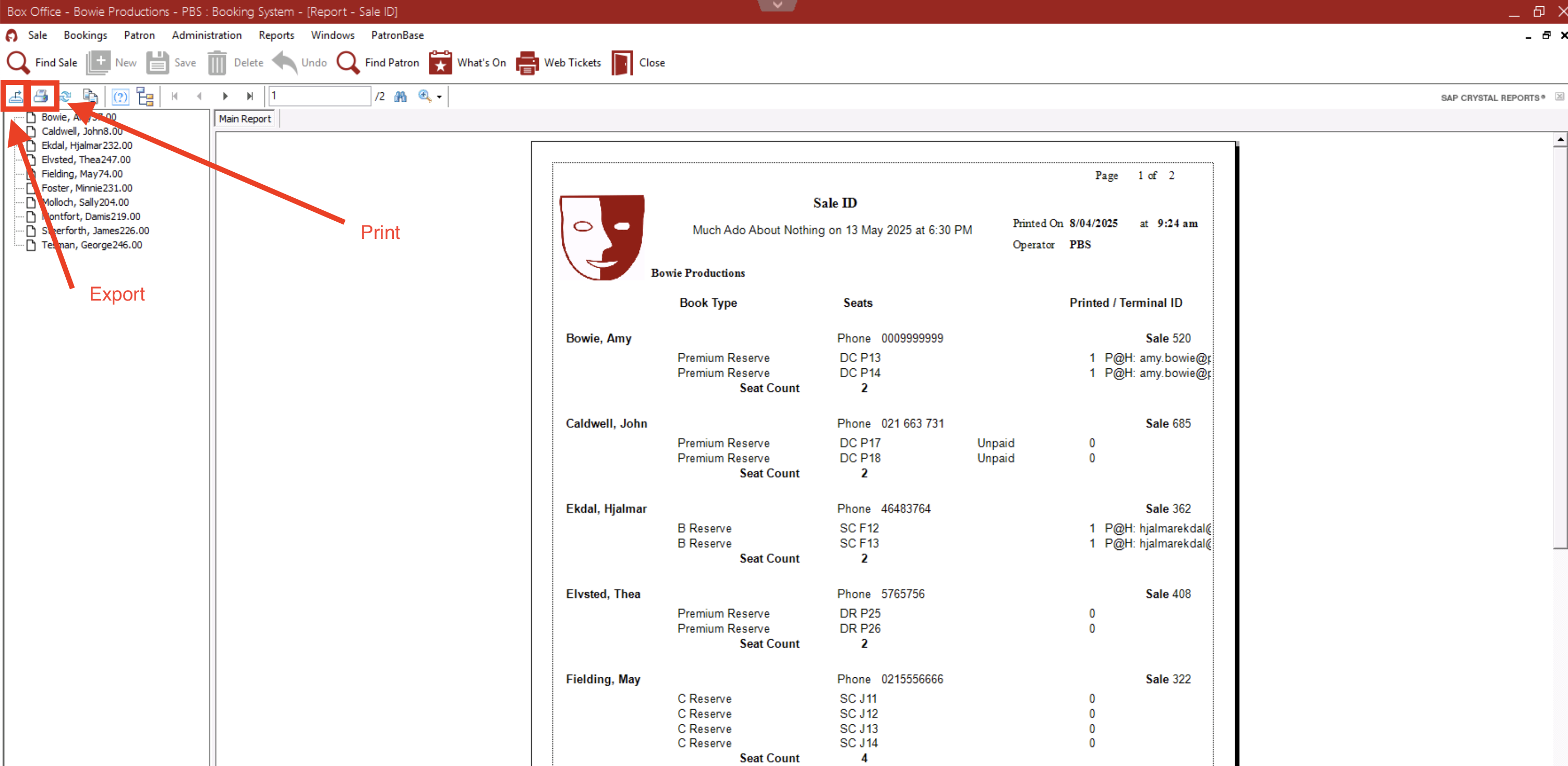 Note: If you are running workshops or classes you may like to read this article first: How to report on class or workshop attendees If you're wanting to contact Patrons via email in the first instance you may like to read this article: How to extract an email list of patrons for ALL performances of an upcoming production |